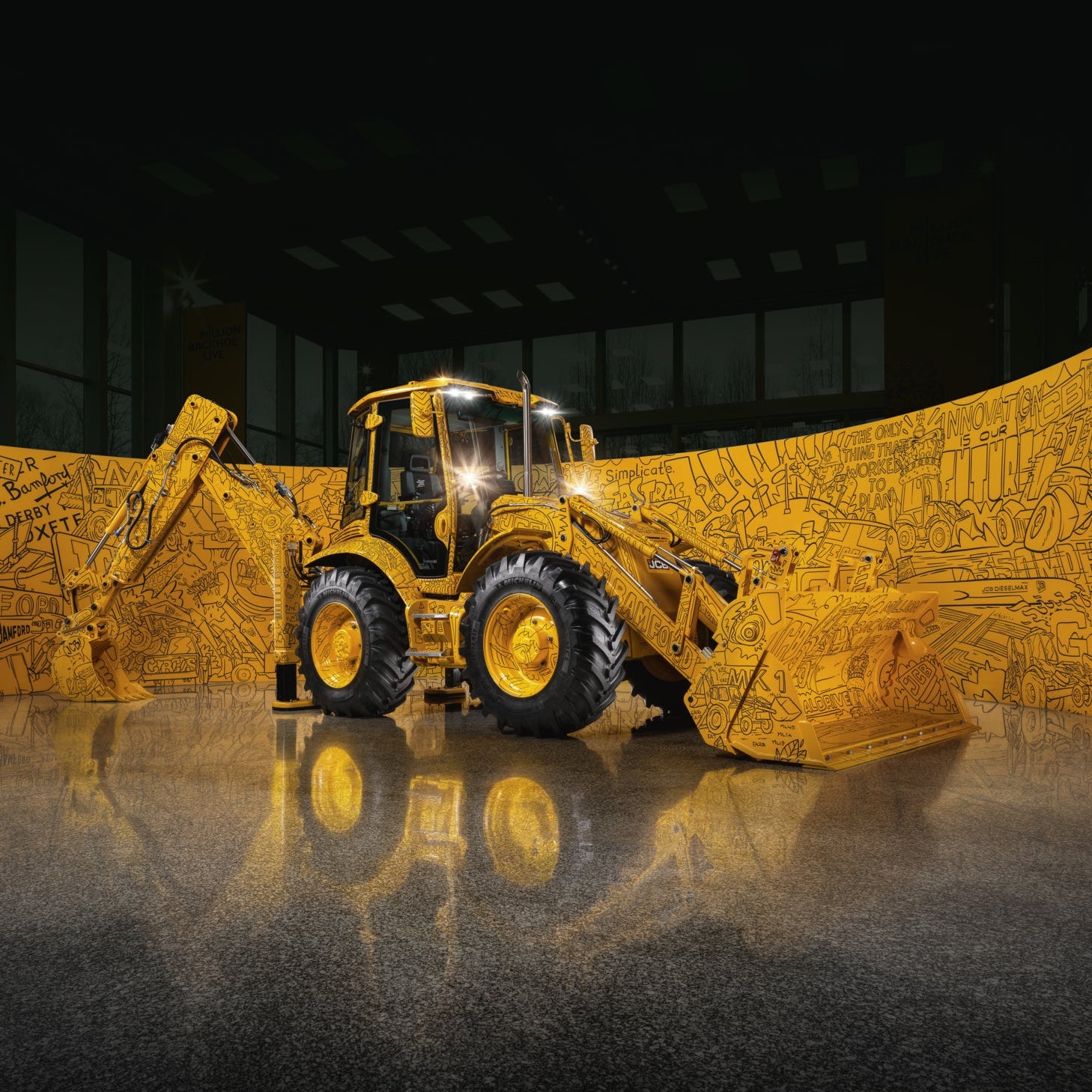 The JCB 1 Millionth Backhoe Loader commemorates a historic milestone with a custom 4CX model featuring graffiti art by London artist Hatch, symbolizing decades of innovation and craftsmanship.