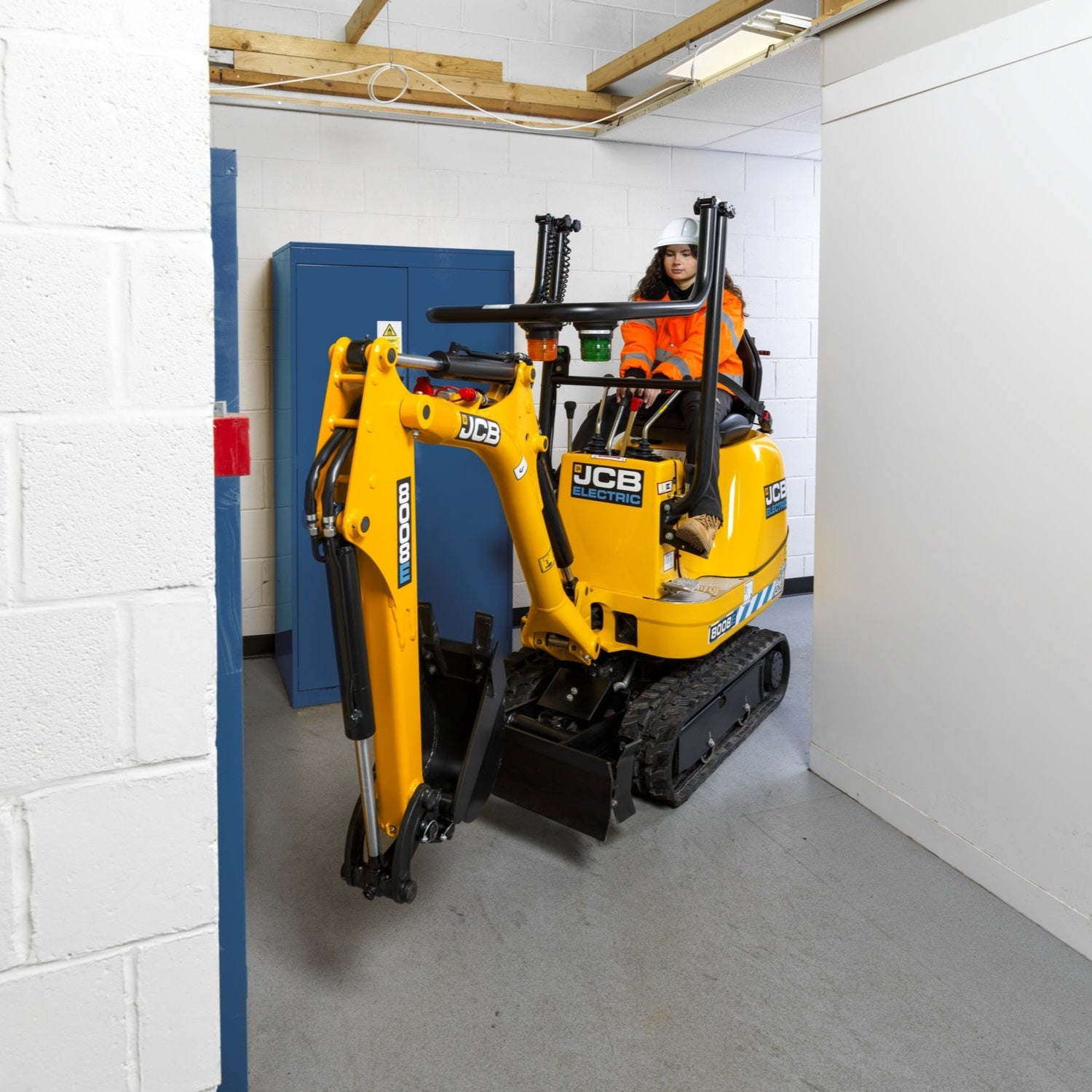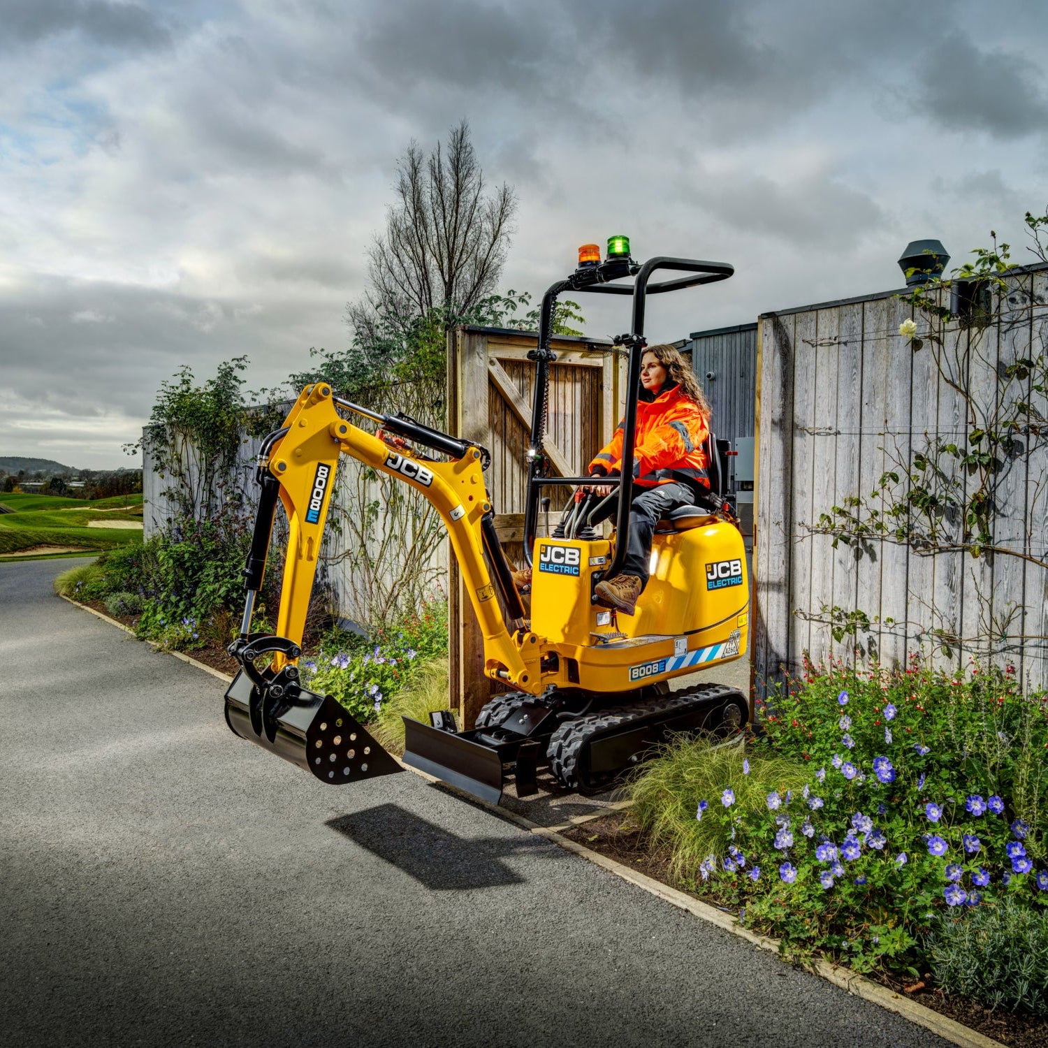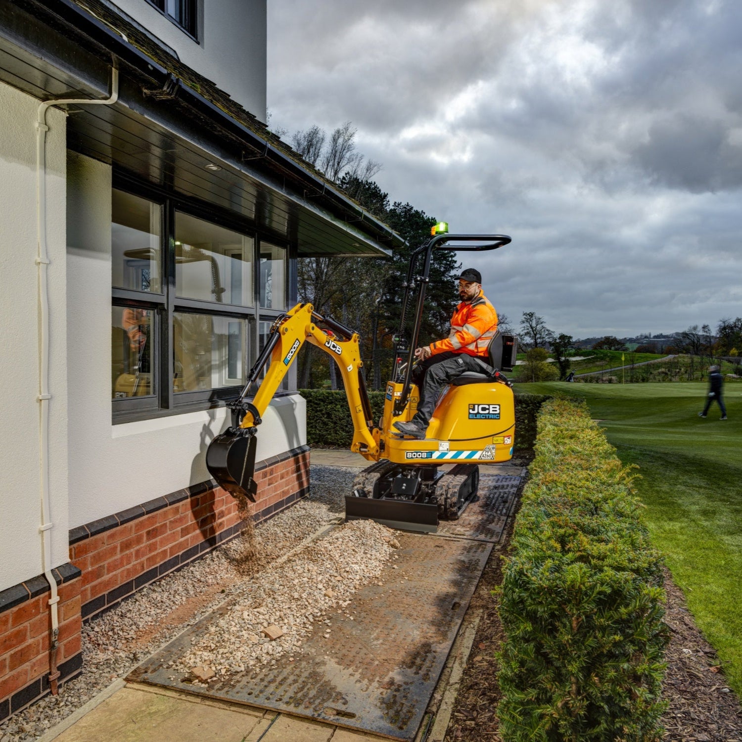 The JCB 8008E CTS micro excavator delivers high performance in a small, electric package, perfect for urban sites, indoor projects, and landscaping work.