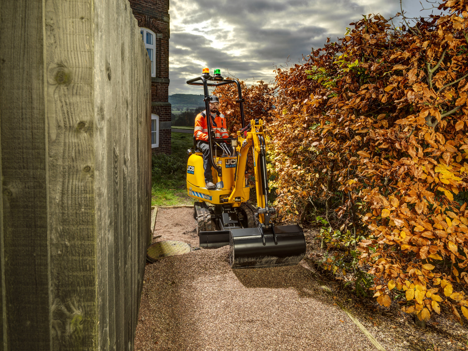 Engineered for tight spaces, the JCB 8008 CTS weighs just 950kg, allowing it to pass through standard doorways — perfect for indoor projects and garden work.